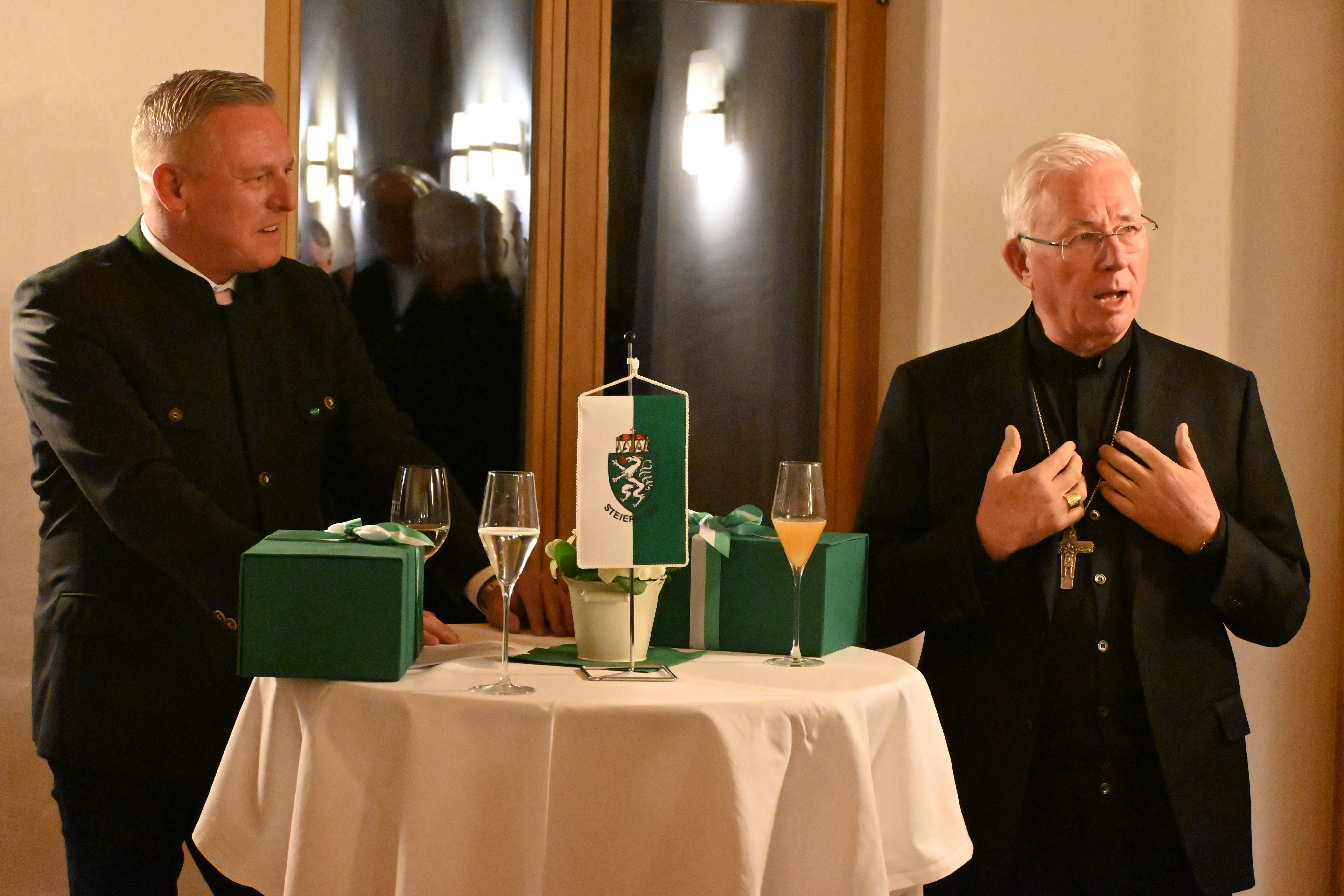 Im Anschluss an den Gottesdienst luden die Spitzen des Landes, Landeshauptmann Mario Kunasek (FPÖ) und seine Stellvertreterin Manuela Khom (ÖVP) zu einem Empfang mit den Mitgliedern der Bischofskonferenz. Anwesend waren zahlreiche Verantwortungsträger der Diözese Graz-Seckau, unter ihnen die steirische Caritas-Direktorin und österreichische Caritas-Präsidentin Nora Tödtling-Musenbichler. Gekommen war auch der evangelische Superintendent Wolfgang Rehner, der von Erzbischof Lackner beim Gottesdienst ausdrücklich begrüßt wurde. Rehner ist auch Vorsitzender des Ökumenischen Forums Steiermark.
