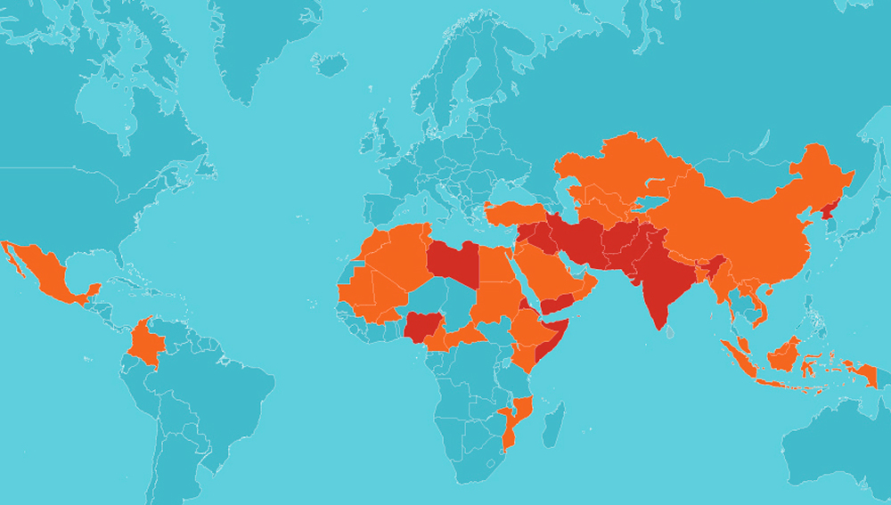 Auf Platz 1 des aktuellen Weltverfolgungsindex findet sich wieder Nordkorea; das asiatische Land steht seit 20 Jahren auf diesem Rang. Dahinter folgen Afghanistan, Somalia, Libyen, Pakistan und Eritrea. Die Plätze sieben bis zehn nehmen Jemen, der Iran, Nigeria und Indien ein. Es folgen u.a. der Irak (11), Syrien (12), Sudan (13), Saudi-Arabien (14) und die Malediven (15).